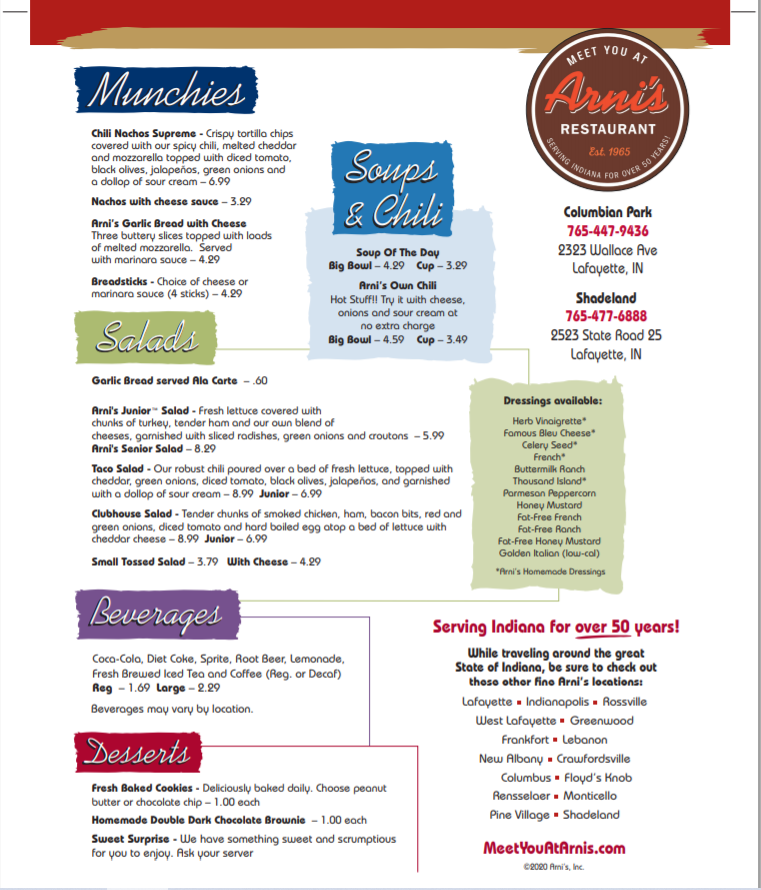 Welcome to Arni's Lafayette Shadeland, a delightful culinary gem nestled in Shadeland, Indiana. Known for its inviting atmosphere and exceptional service, this eatery is a must-visit for both locals and travelers alike. Their menu boasts a fantastic array of dishes, but let’s highlight a few standout offerings.